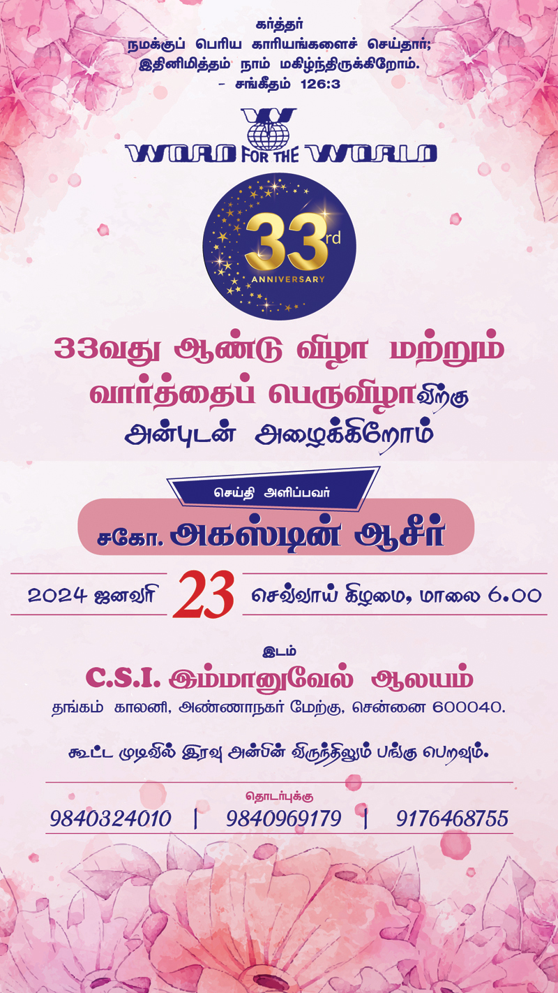 33வது ஆண்டு விழா மற்றும் வார்த்தைப் பெருவிழா